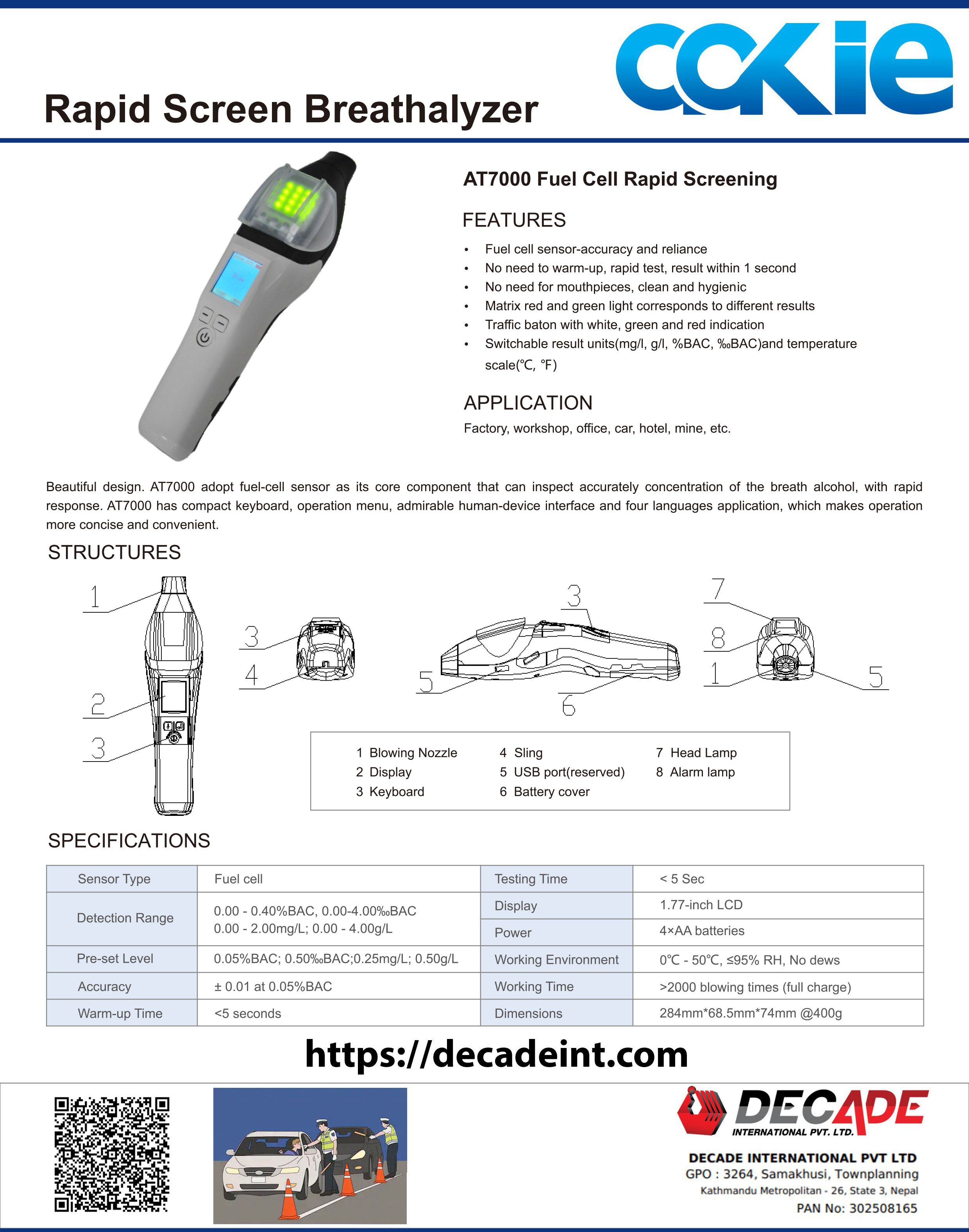 • This law enforcement breathalyzer (alcohol tester) is mainly for screening on the road side.