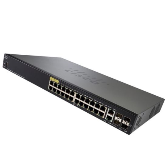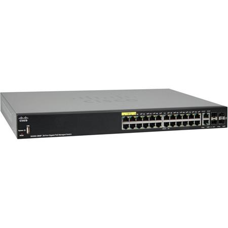 With the ability to deliver data, voice, and video services, the SG350-28MP 350 Series 28-Port PoE Managed Gigabit Ethernet Switch from Cisco comes equipped with 28 Gigabit network ports, including two GbE combo ports supporting fiber connectivity and two SFP slots. The non-fiber ports are also PoE+ compliant supporting the 802.3af and 802.3at PoE network standards with a maximum PoE power budget of up to 382W.