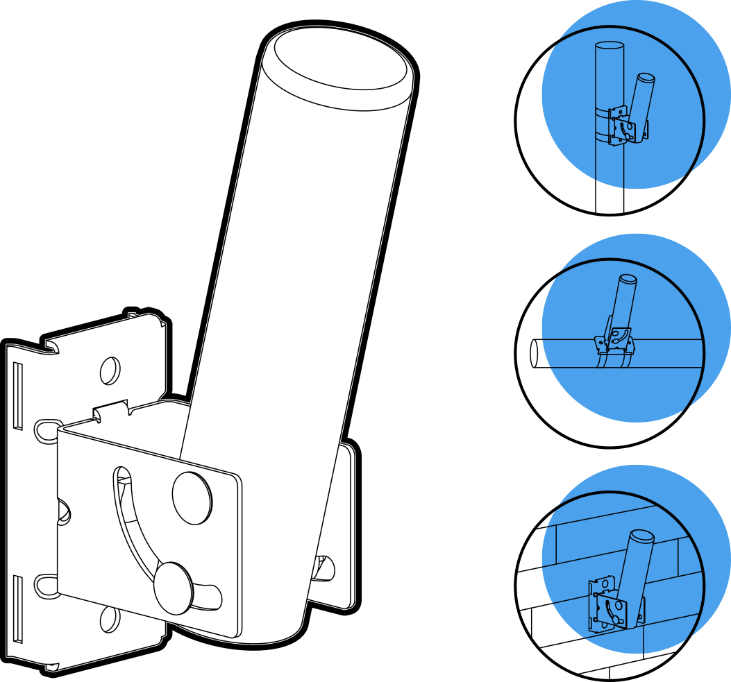 The Mimosa flexible pole mount accessory accommodates both vertical and horizontal pole mounting applications, as well as basic wall mounting where minimizing the distance os the C5 relative the wall is important.