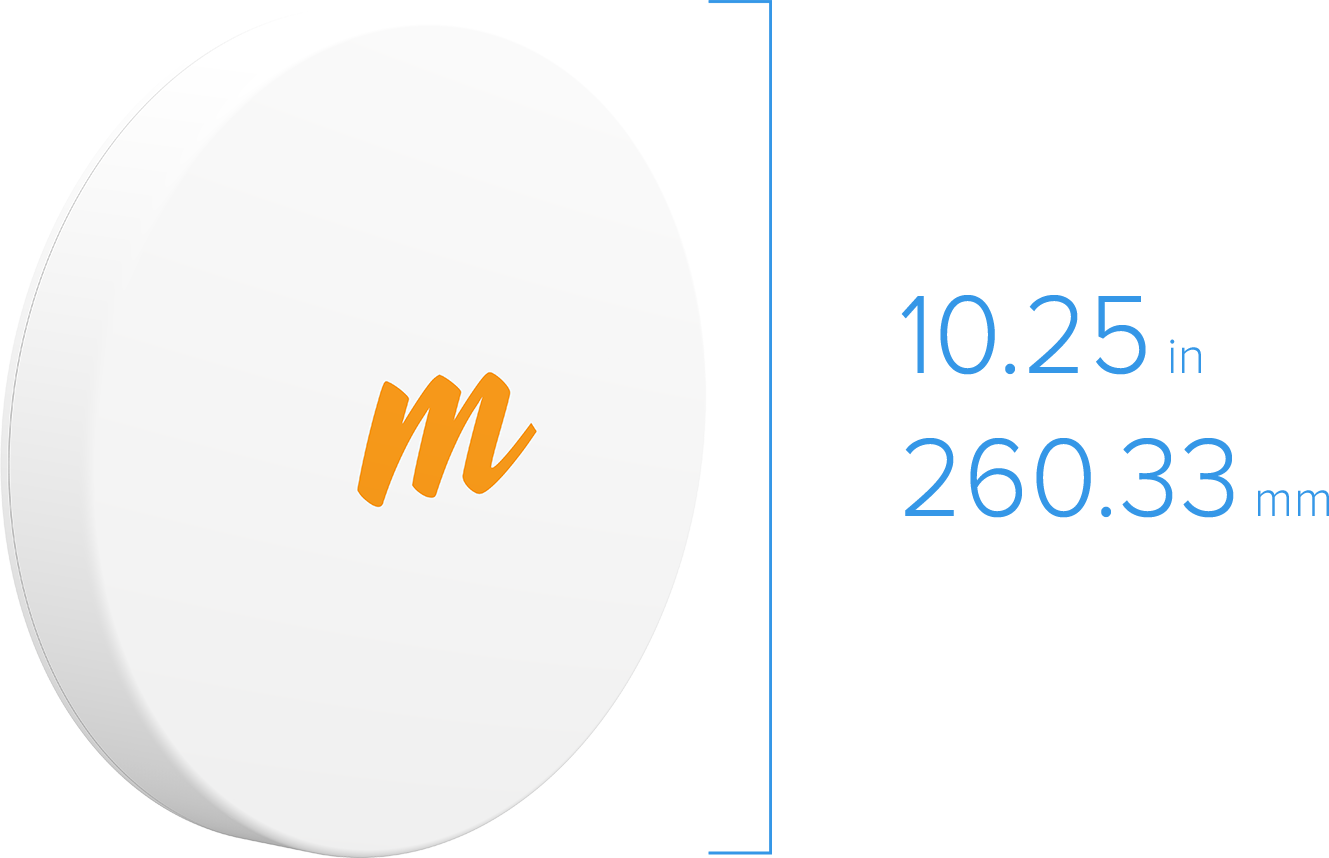 The attractive C5 design delivers incredible range with only a 10.25 in (260 mm) diameter integrated antenna. With cutting edge dual 45º slant polarization design and aperture efficiency of greater than 50%, the C5 delivers 20 dBi antenna gain in the smallest design possible.