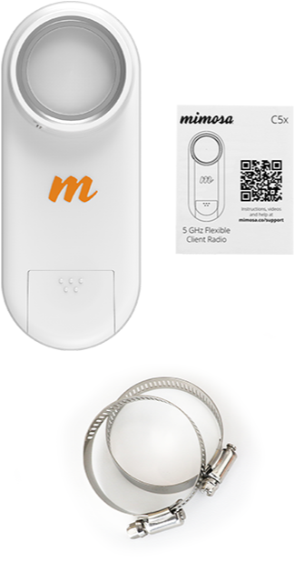 The Mimosa C5x is the industry’s most versatile, integrated radio with four modular twist-on antenna options. The ultra-rugged solution provides extended frequency operation from 4.9–6.4 GHz, with best-in-class noise immunity. Delivering the ultimate in flexibility and cost efficiency, the C5x is the go-to PTP or PTMP solution for 5 GHz deployments..