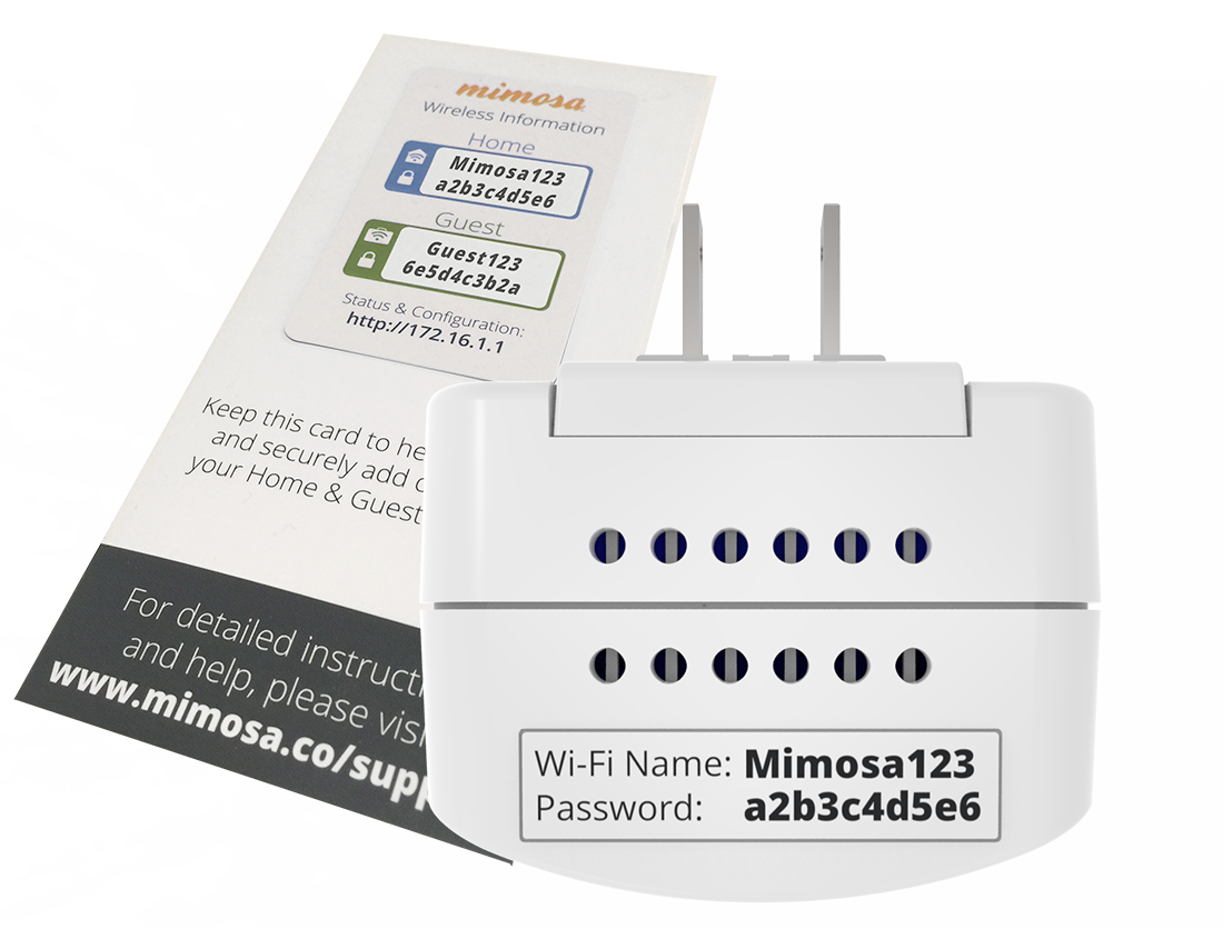 The Mimosa G2 ships pre-configured with an SSID name and unique password printed on the device as well as on a convenient and durable card, eliminating manual configuration and reducing support calls.
