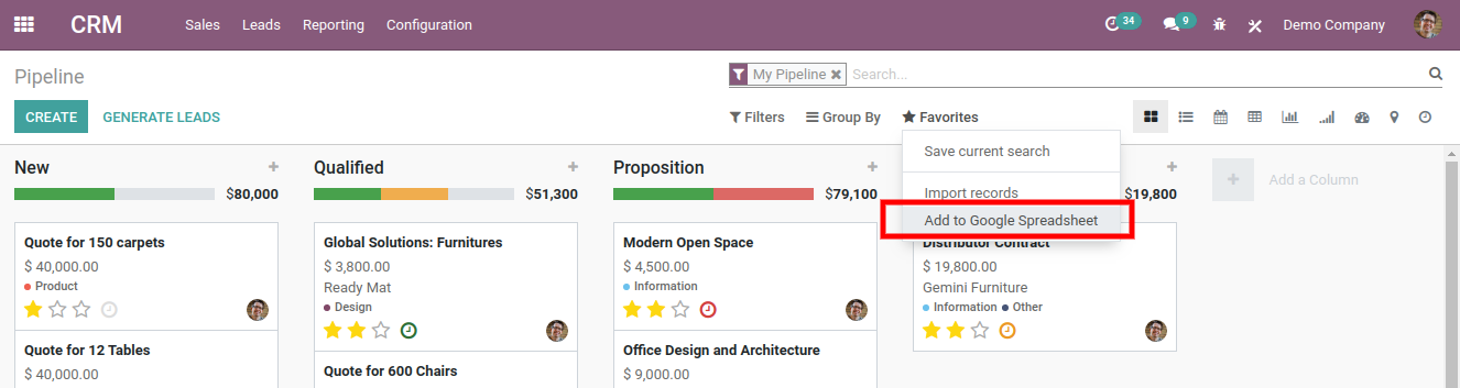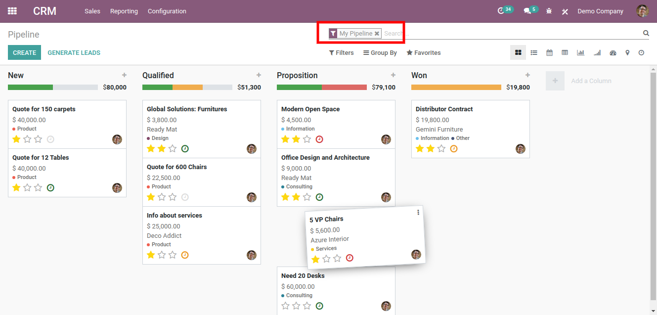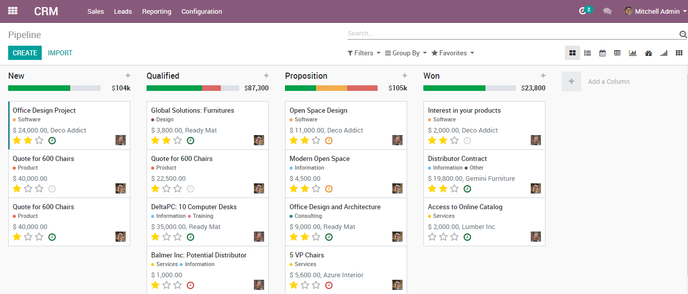 Sales pipeline plays an important role in the growth of any business – Sales pipeline helps you to plan your growth activities in Advance. Odoo CRM offers you a clear picture of your opportunity pipeline. With different stages, you can better organize your sales pipeline.