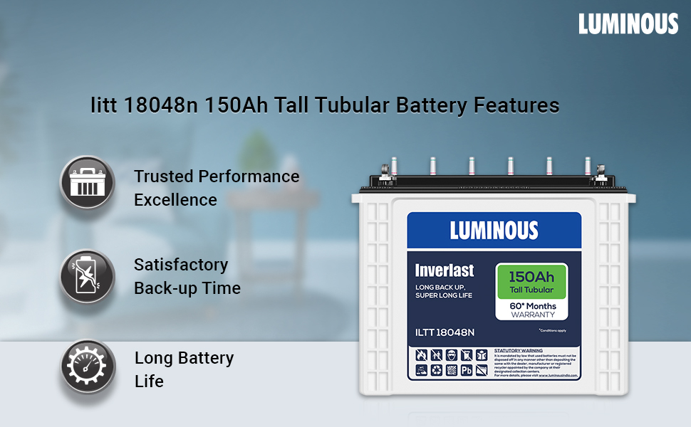 Luminous Inverlast ILTT 18048N Tubular plate construction ensures uniform distribution of positive active material for extremely long life and superior performance