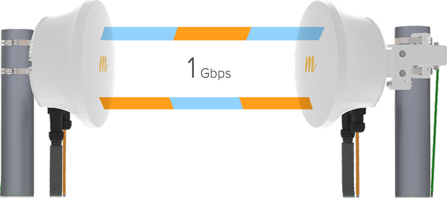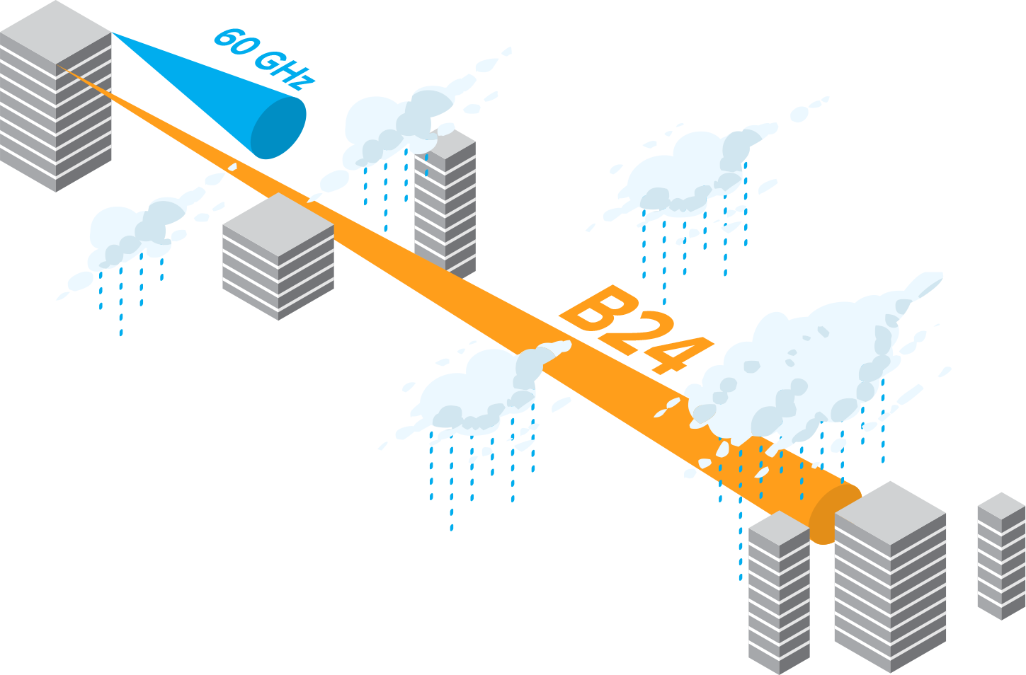 Don’t be distance-limited by higher frequency microwave technology. Use the B24 to avoid the congested 5 GHz spectrum and deliver superior reliability, even with rain, at practical distances up to 3 km (2 mi).